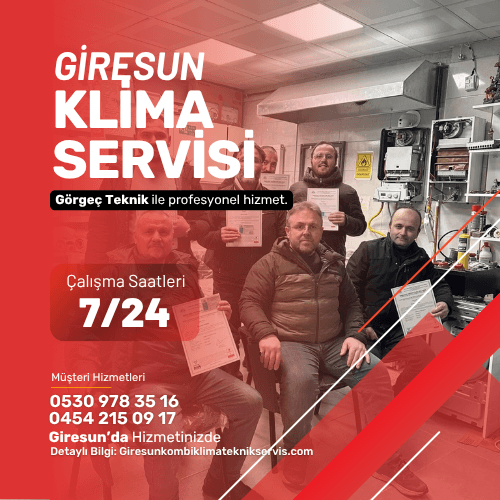Görgeç Teknik olarak Giresun'un tüm bölgelerinde Kombi Servisi, Klima Servisi, Kombi Arıza, Petek Temizliği ve Yedek Parça ihtiyaçlarınızda, Yakup Görgeç güvencesiyle hizmetinizdeyiz.
