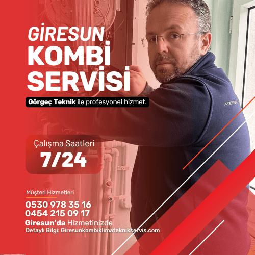 Görgeç Teknik olarak Giresun'un tüm bölgelerinde Kombi Servisi, Klima Servisi, Kombi Arıza, Petek Temizliği ve Yedek Parça ihtiyaçlarınızda, Yakup Görgeç güvencesiyle hizmetinizdeyiz.